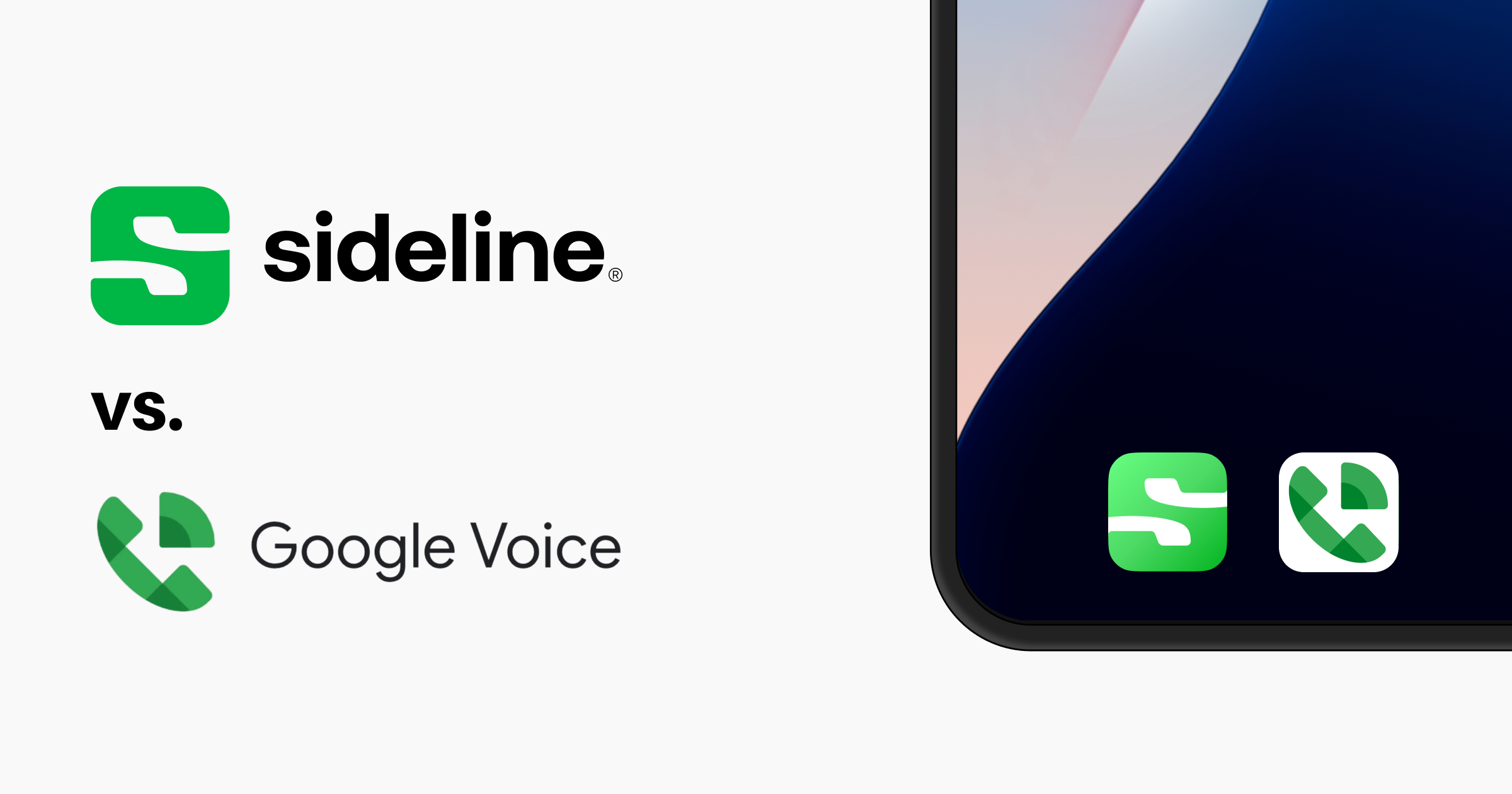 Comparison of Sideline vs Google Voice, second phone number apps, highlighting reliability and spam filtering.